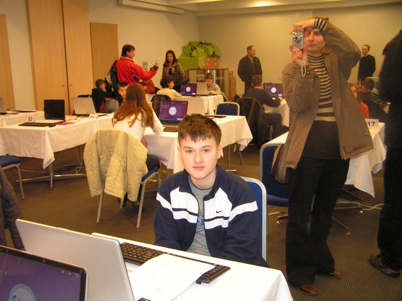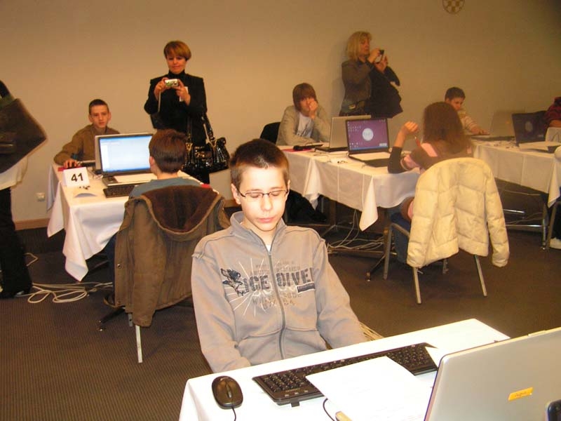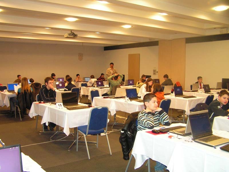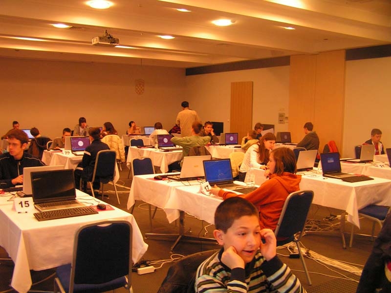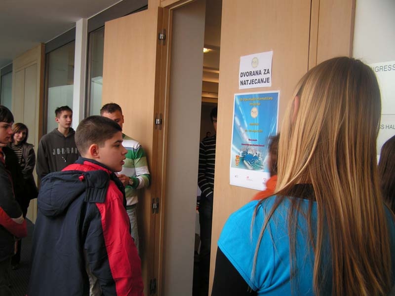 Informatički uranak počeo je u 8:30.. Zagreb ima predstavnike u svim razredima, čak i jednog padobranca s kapicom koji se "ugurao" među starije, jedinog četvrtaša Vedrana, dakle sigurnog pobjednika.