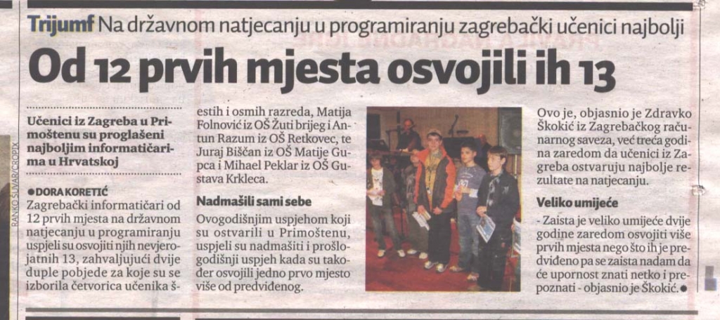Informatičari od mogućih 12 osvojili 13 prvih mjesta   Jutarnji 4/2007