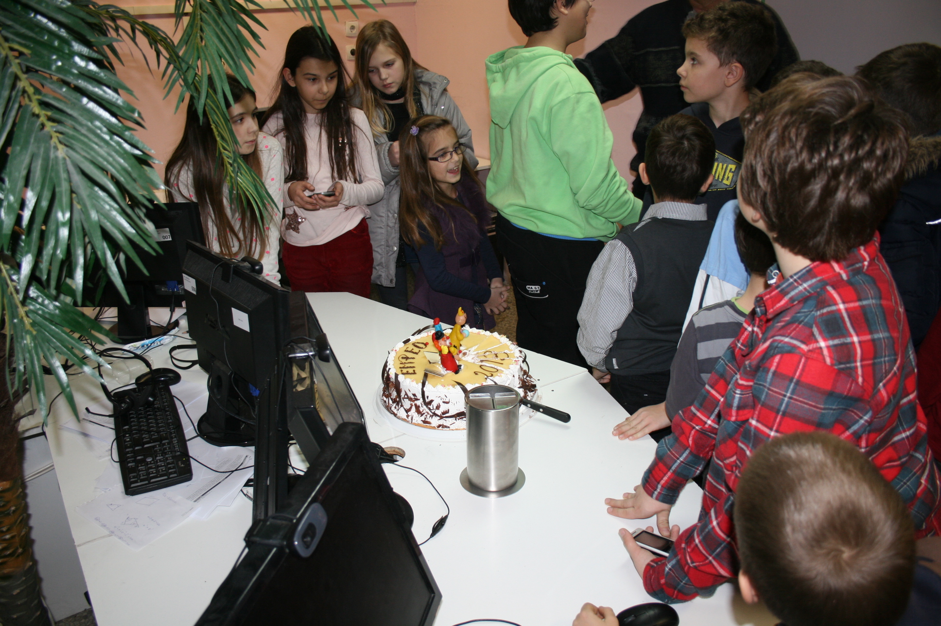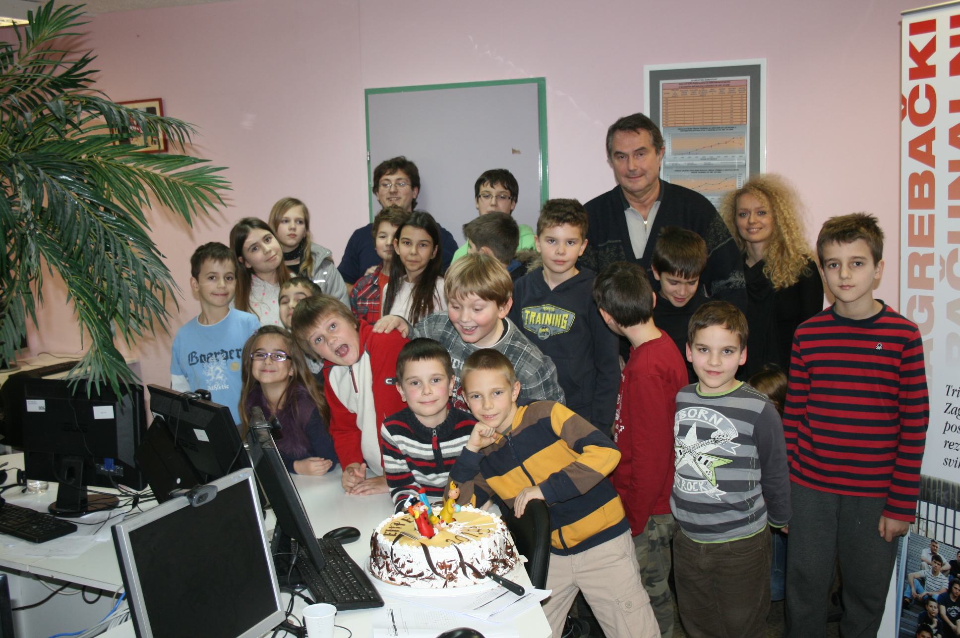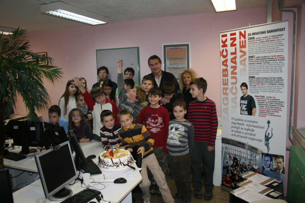 Vesela i vrijedna ekipa je marljivo radila, i u prizemlju i u željezničkoj modelarnici. U stanci je uživala, i na kraju tortom proslavila svoje sudjelovanje. Tortu je prerezao Dominik Fistrić, sada učenik 7.r i peterostruki državni pobjednik (kojemu su još uvijek greškom organizatora upisane samo tri pobjede). Dominik je inače jedini ostvario sve pobjede na natjecanjima za učenike razredne nastave, ukupno nanizavši osam pobjeda, četverostruku na olimpijadi i istu takvu na programerskoj ligi MINI VIJUGA. Pri rezanju torte pomagao mu je Dorijan Lendvaj koji je dosad pobijedio na svim natjecanjima za učenike razredne nastave na kojima je sudjelovao, a i dokazano zna pridržavati ruku koja drži nož za rezanje torte. Rezanje je potrajalo, bilo je i poziranja za TV BOŽO, Dorica Lendvaj je donijela životnu odluku dok je naša mala torta začas našla put vena i aorta. Dominik je odlučio obračunati sam sa sobom, nije mu se dopalo što je dubio na glavi nasred torte.