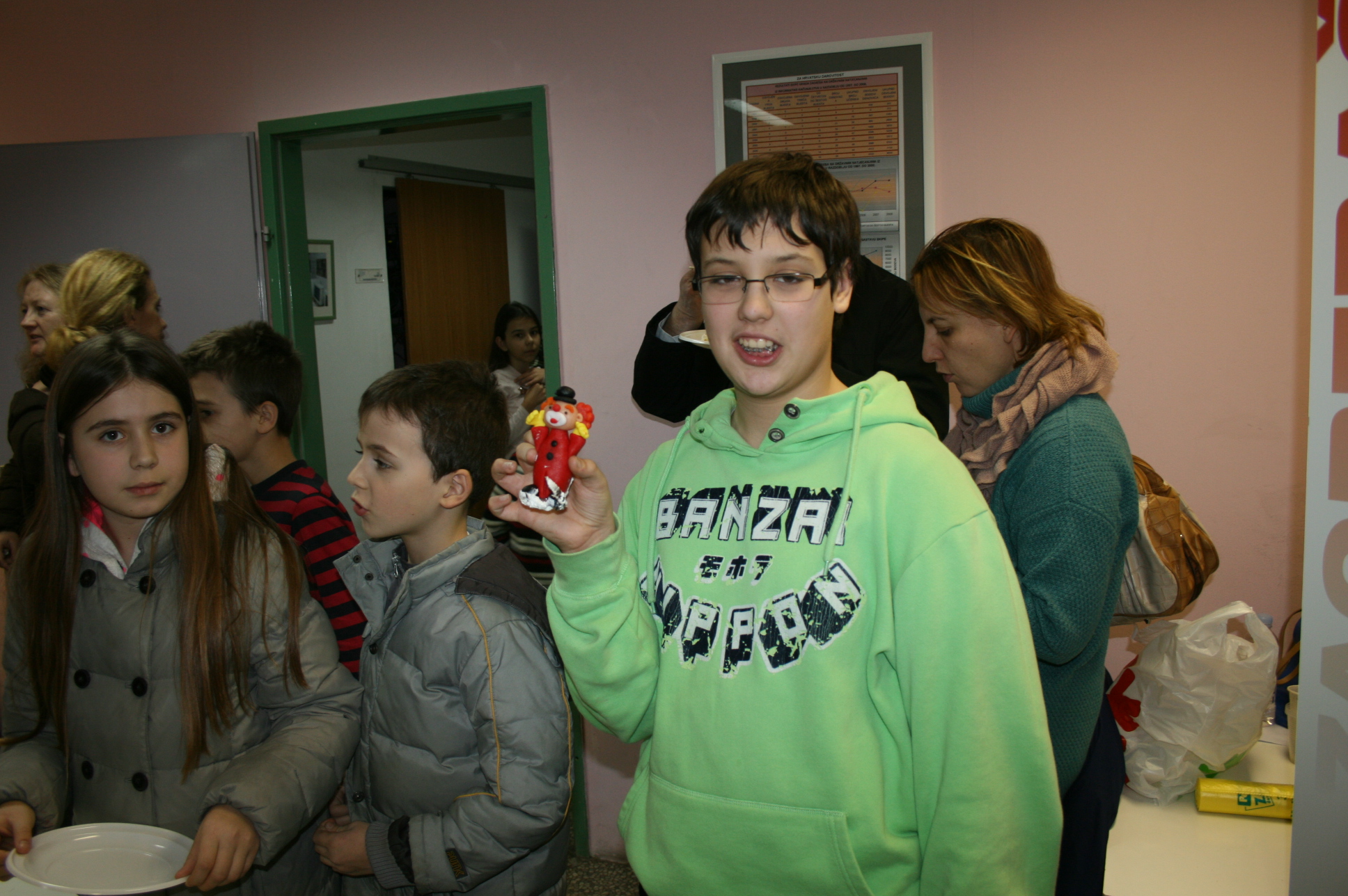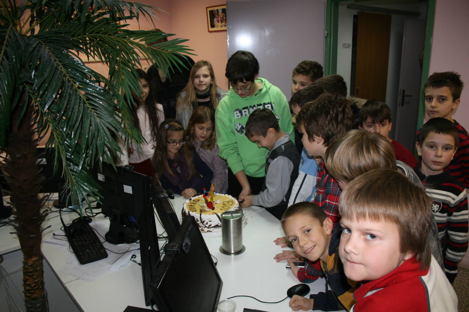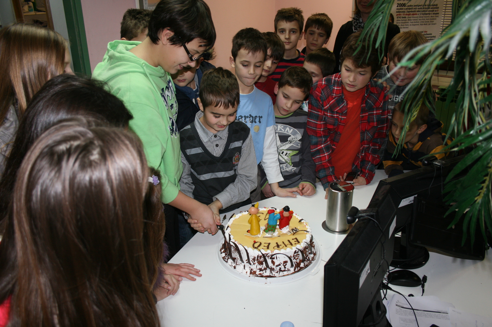 Vesela i vrijedna ekipa je marljivo radila, i u prizemlju i u željezničkoj modelarnici. U stanci je uživala, i na kraju tortom proslavila svoje sudjelovanje. Tortu je prerezao Dominik Fistrić, sada učenik 7.r i peterostruki državni pobjednik (kojemu su još uvijek greškom organizatora upisane samo tri pobjede). Dominik je inače jedini ostvario sve pobjede na natjecanjima za učenike razredne nastave, ukupno nanizavši osam pobjeda, četverostruku na olimpijadi i istu takvu na programerskoj ligi MINI VIJUGA. Pri rezanju torte pomagao mu je Dorijan Lendvaj koji je dosad pobijedio na svim natjecanjima za učenike razredne nastave na kojima je sudjelovao, a i dokazano zna pridržavati ruku koja drži nož za rezanje torte. Rezanje je potrajalo, bilo je i poziranja za TV BOŽO, Dorica Lendvaj je donijela životnu odluku dok je naša mala torta začas našla put vena i aorta. Dominik je odlučio obračunati sam sa sobom, nije mu se dopalo što je dubio na glavi nasred torte.
