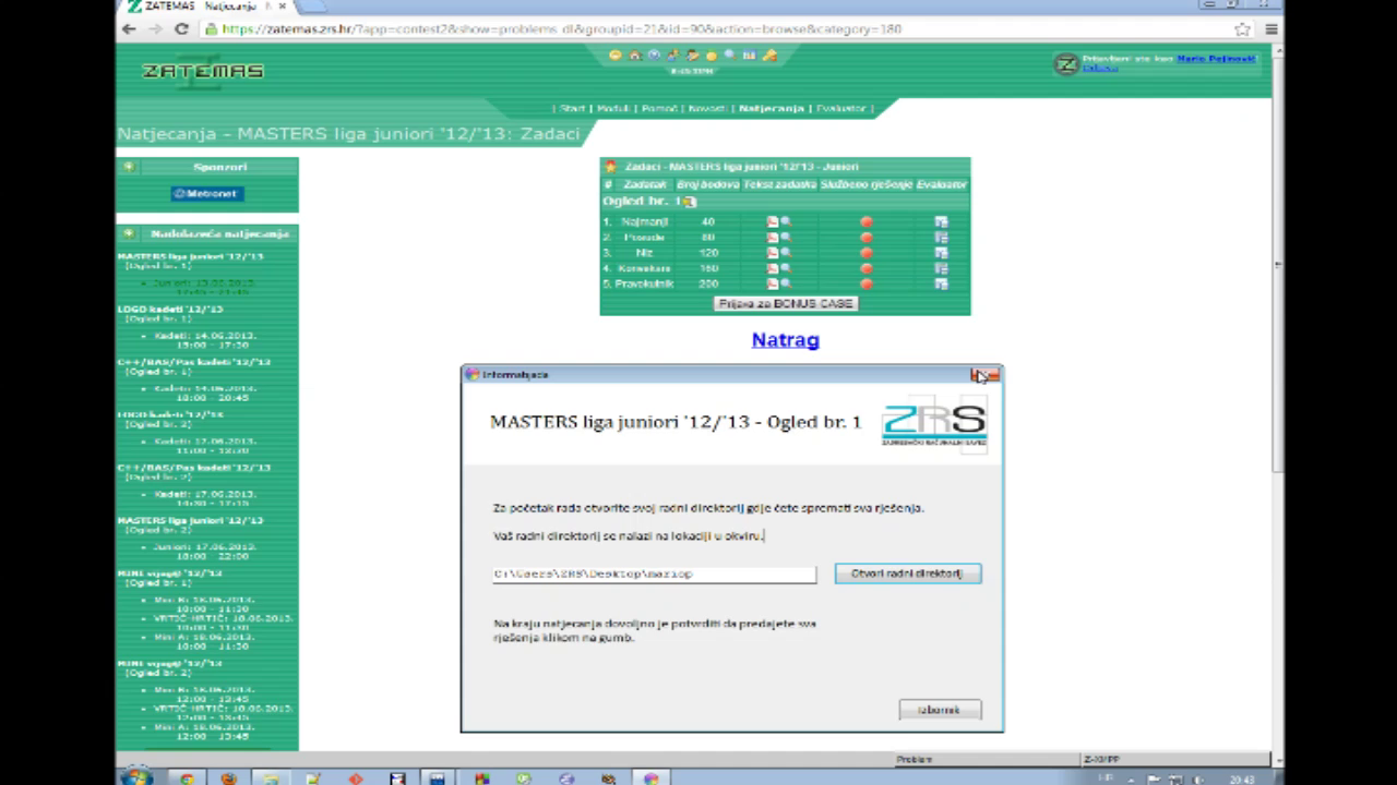 Natjecanje se održavalo u računalnoj učionici u Ilici 53, dvorište u prizemlju te u potkrovlju u radionici Kluba željezničkih modelara Zagreb. Ukupno trideset natjecateljskih računala, te po dva režijska, studijska, serverska i pomoćna računala, s pratećom m/m i drugom opremom, uz 50/50 Mb/s sponzorske optike po Metronetu, bila su testno spojena u jedinstveni video i podatkovni sustav. Na maloj uvodnoj svečanosti uoči finanlnog dana grupa ADASTRA iz Zagreba poručila je darovitim pojedincima da ustrajno idu putem kojim su naumili, ne obazirući se na one koji to ne razumiju, te im u to ime odsvirala "Pusti nek' misle što hoće" i još nekoliko uspješnica. Natjecanje je, uz testnu izjavu za TV BOŽU, posjetio izaslanik gradonačelnika Grada Zagreba Mirko Banjeglav iz gradskog ureda za obrazovanje, kulturu i šport Grada Zagreba.i izjavio da Grad ni jednog trenutka nije požalio što je ZRS dobio oba najviša priznanja za rad s darovitima, uočivši trud domaćina da se i maketarska radionica upotrijebi u svrhu vrhunski inoviranog natjecanja.