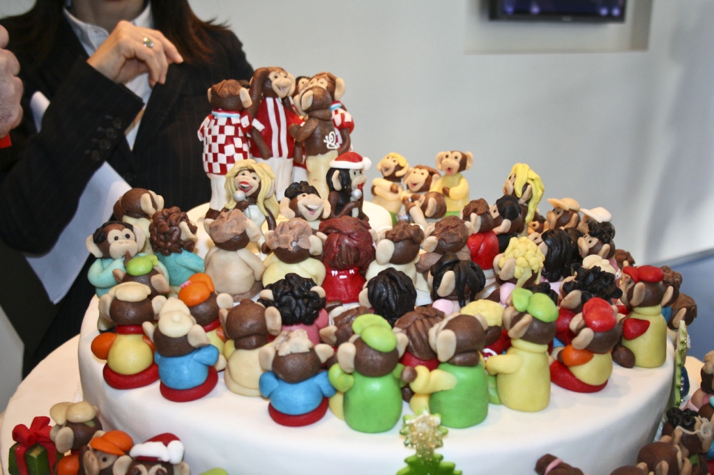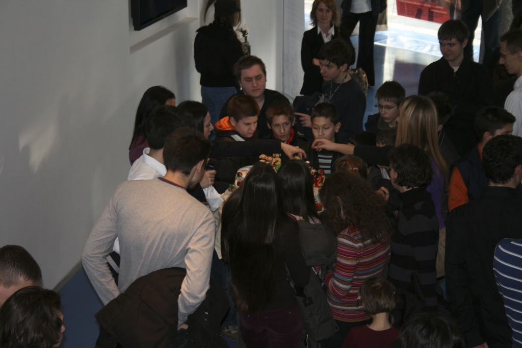 Ona je sve ovo napamet naučila krupnijim slovima, a imena i prezimena svih najboljih učenika našla su se na plakatu koji je za tu prigodu izradio domaćin, Muzej Dražena Petrovića. Učenicama i učenicima te svim dobrostojećim prisutnima je na kraju stigla i šaljiva torta iznenađuša TULUM.BA" koja je sve njihove rezultate proslavila na osobit način. No prije nego što su se njome osladili, spremno je i slatko pozirala snimateljima. U centru pažnje bili su marcipanski majmunčići i majmunčice, u hrvatskim odorama. Prednajčio je informatički predak Luke Kalinovčića na kojeg su se, stavljanjem desne ruke na glavu, ponosno priključili svi dobitnici medalja na olimpijadama 2008. A u blizini im je bio jedino nekadašnji zlatni Lovro Pužar i iskreno i s razumijevanjem zapljeskao (kuži on stvar, dijelom iz vlastitog iskustva, iako je oduvijek bio samo puž.ar) . Jasno, na torti su svoje pretke pronašli i svi ostali prisutni učenici i učenice, ali i profesori i mentori. Mudraci, s Lujom na čelu, su stajali sa strane prekriženih ruku, profesori i doajeni su sjedili, a nove marcipanske generacije stajale u redovima pred olimpijskom pozornicom. Đeronimo Marić, hercegoski madjar svirao im je gitaru kao na Silbi, no nitko ga nije slušao. Svi su se bojali efekta Nabujale rijeke. A nekoliko jadnih ZRS.ovaca se pokušalo popenjati na tortu, no bez uspjeha i bili su sretni što nisu 'opali s nje. Jedini e-potomak koji se slučajno preziva Razum mislio je da je priredba u Njemačkoj, ali ga je zaborava spasio Matija Milišić, pozirajući za fotku "Razum u ruci" i "Razum na zidu". Mihael Peklar se začudio zašto ima dva marcipanska pretka, a onda je uz osmijeh shvatio da zapravo i vrijedi "barem kao dva majmuna". Neki marcipanski e-potomci su svoje pretke odmah i pojeli, a drugi su ih ponijeli kući da podijele radost evolucije i majmunožderstva s ostalim potomcima svojih informatičkih predaka. Na torti se našla i mlada pjevačica pjesme "100 godina BOŽE" Hana Blažević, HANA.bla, buduća plavušica, kćerka pok. Krešimira Blaževića, poznatog šefa i autora u izvornoj novovalnoj grupi ANIMATORI. Višestruki zlatnik Goran Žužić uživao je i na torti i u Muzejskom prostoru. Ipak je to njegova zlatna godina, a ne zlatna godina ZRSa. Jedna infromatičarka koja baš ne zna tipkat, ali programira ko luda, poklonila je olimpijcima Monografije o Draženu Petroviću ( Božu već imaju) .