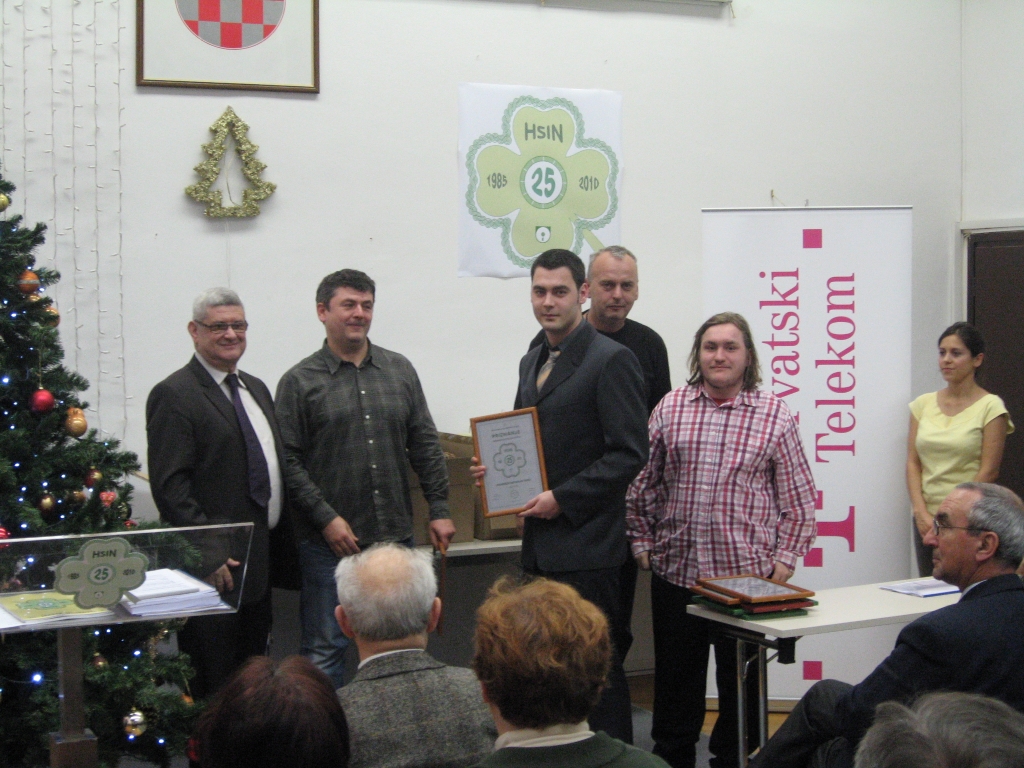 Zagrebački računalni savez je, među inima, dobio PRIZNANJE "SREBRNA DJETELINA HSIN-a" za potporu programima povodom 25 godina HSIN-a. U ime najboljih natjecatelja zahvalio se Ivica Kičić, a svojom pojavom dominiraosmiley je ponovno AS (Kurdija).